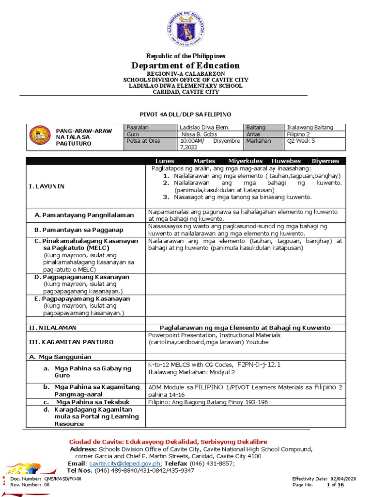 FILIPINO DETAILED LESSON PLAN 4AS Latest PDF