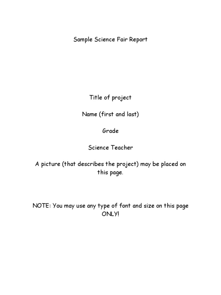 The research section needs to be a minimum of 3/4 page which includes at least three paragraphs. See the examples below (note: The data is made up, and the averages are approximate). The science fair project report is a report of the entire study including the data collected and analyzed which leads to a conclusion based on. Includes required elements and sample report. How to prepare the final report for your science fair project. Organize material and write a rough draft.